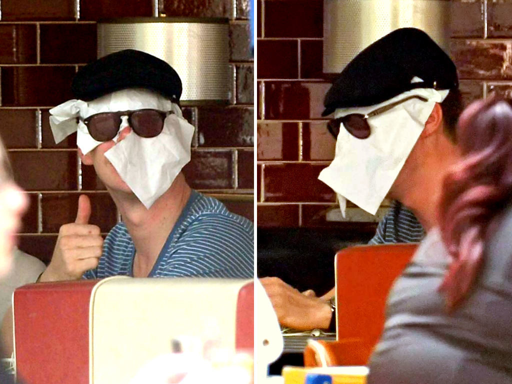 One of the Internet’s favorite acknowledgements of the paparazzi, Benedict Cumberbatch is comical as he fools around with a napkin during lunch. While masking his identity, the “Sherlock” star proves that he definitely knows how to put on a show for the press when they’re around.