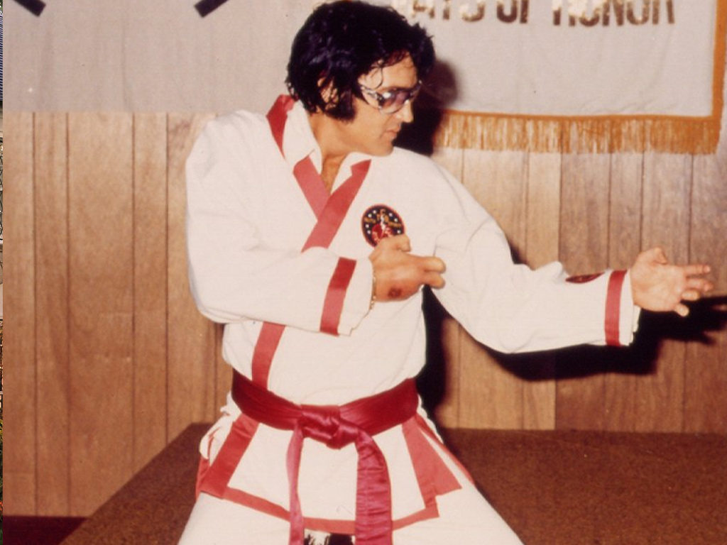 Elvis was an expert in karate. He earned a seventh-degree black belt in Kenpo. In 1974 he became the founder of the Tennessee Karate Institute in Memphis. His white Cossack top two-piece was inspired by his white karate outfit.