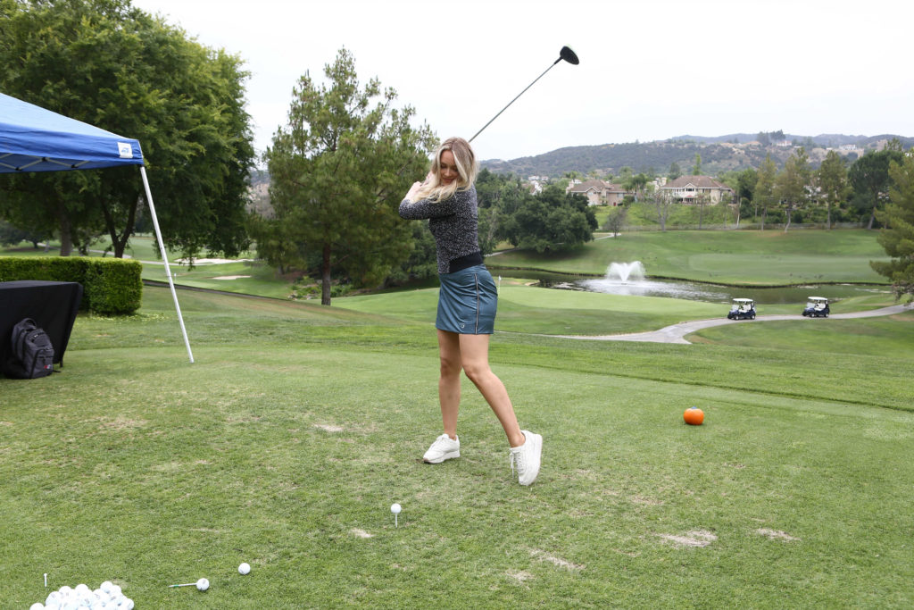 Camille Kostek plays in The Golf Classic presented by Hublot at Calabasas Country Club, with snacks by Pasta Chips and Uncle Paulie’s deli to benefit UCLA Children’s Hospital