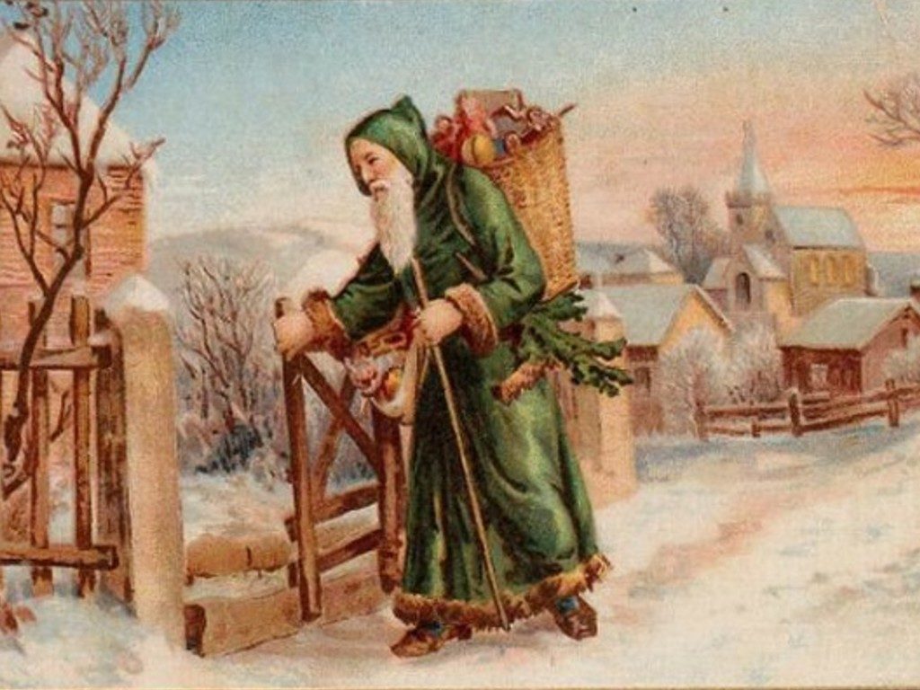 The first appearance of Father Christmas was in a masque written by Ben Johnson in 1616. A masque is a performance similar to a play, though these usually involved pantomime and dance. The masque was called “Christmas, His Masque.” It followed Father Christmas and his ten children with names like Carol, Misrule, Gambol, Offering, Minced-Pie, and Baby-Cake.