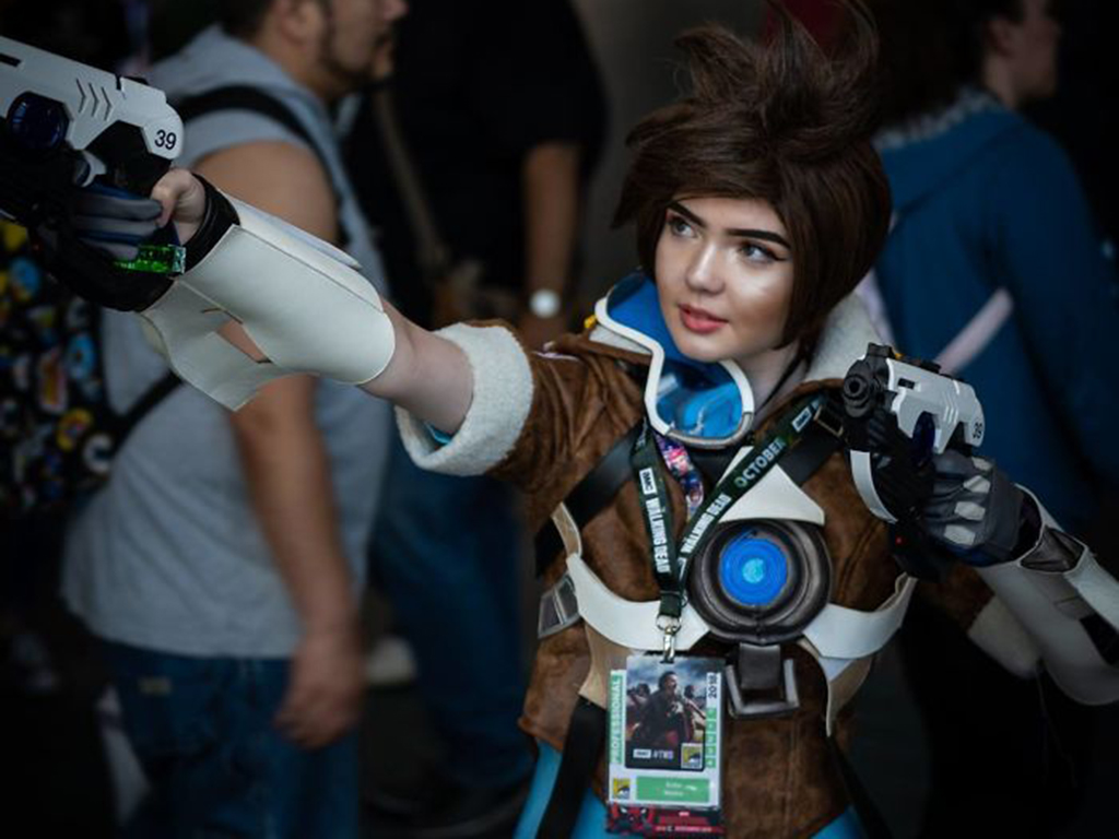 Arguably one of the most recognizable characters from the game “Overwatch,” Tracer is a very popular character among cosplay artists who visit conventions. And this outfit, complete with two custom Pulse Pistols, really captured the character well.