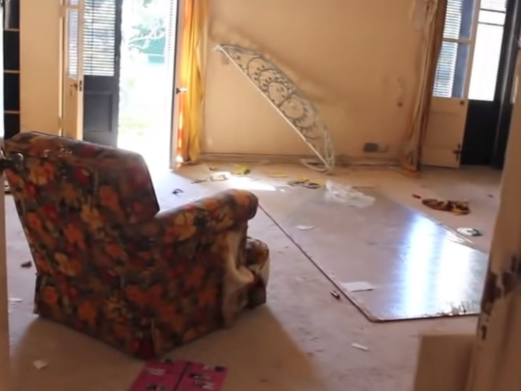 The master bedroom was undoubtedly lavish decades ago, but it had seen better days. There was an old floral printed couch and some tattered drapes. But the expensive bed, night tables, and lamps that were once a part of this place were no more.