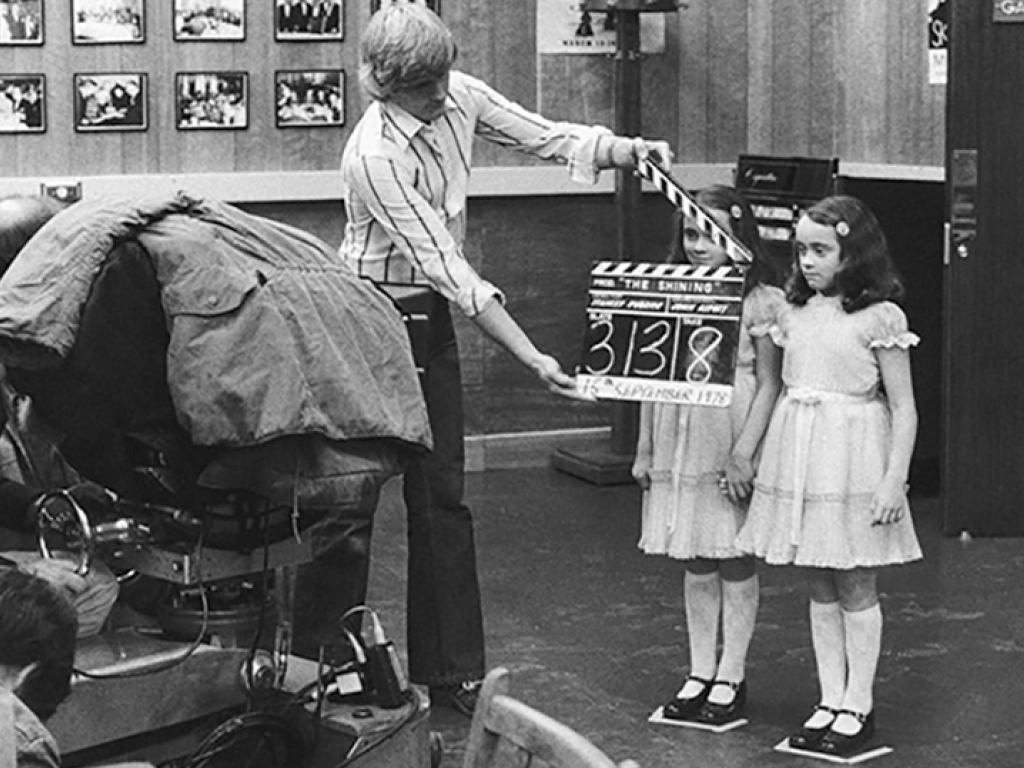 This scene from The Shining shows two twin sisters, Lisa and Louise Burns, about to perform their memorable scene as the ghosts of the murdered Grady girls. Their impressive performance is genuinely chilling in the finished film.