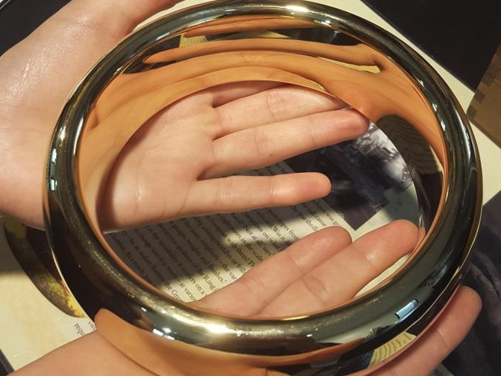 This enormous prop ring was used in The Lord of the Rings for close-up scenes. The movies make extensive use of camera tricks to make some characters seem smaller than others, to accurately display the heights of the tiny hobbits when compared with the larger humans and elves.