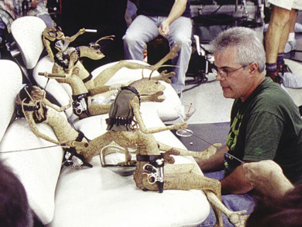 This behind the scenes photo from the set of Men in Black II shows some of the movie’s worm aliens relaxing on a couch. While the Men in Black movies have plenty of computer effects, the worms were created using puppets, helping to give them a realistic sense of place within their scenes.