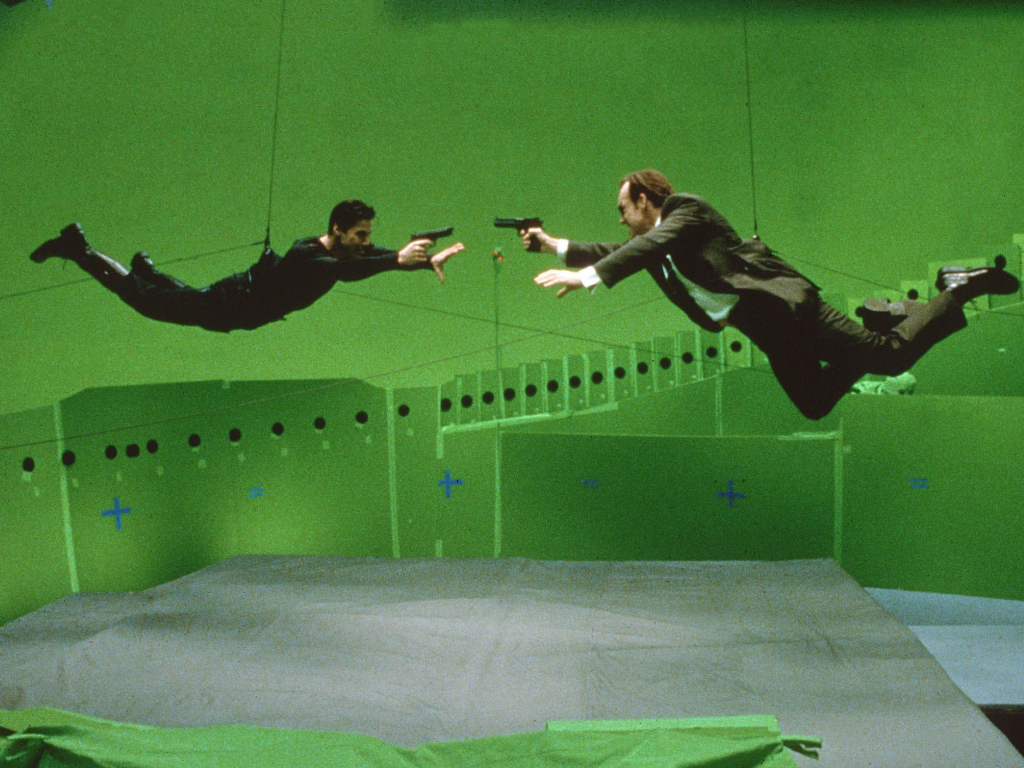 The special effects in The Matrix were mind-blowing at the time of the film’s release, and had a huge impact on action movies for years afterwards. This iconic fight between Neo and Agent Smith looked a lot different when it was being filmed, with a green screen covering the walls, and hundreds of cameras which were used to create the movie’s classic “bullet time” effects.