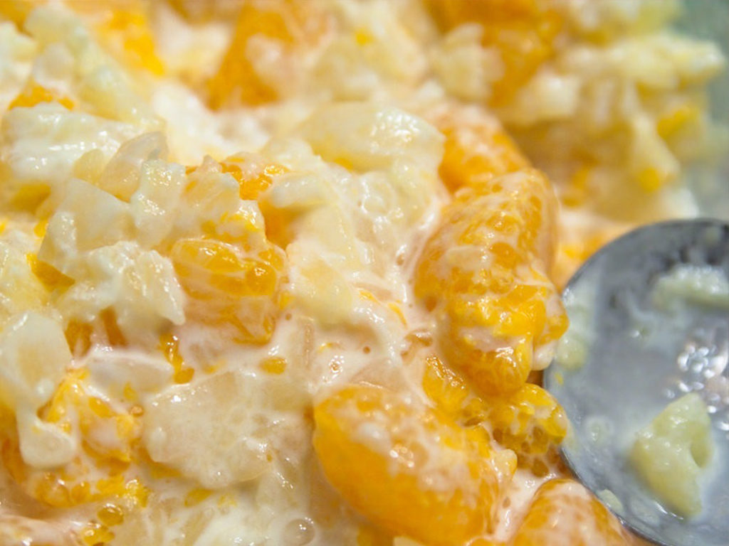 Ambrosia is a recipe for disaster if you’re not American. The repugnant-looking dish contains pineapple, orange slices, and coconut all mixed in with a bunch of miniature marshmallows. Some people even mix Jell-O, Cool Whip and cream cheese to it because why not?