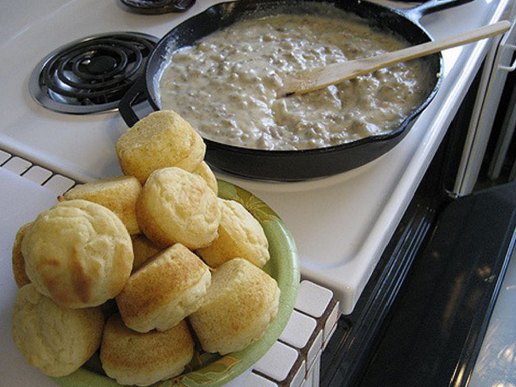 To Americans, this might look like biscuits and gravy, which sounds delicious and perfect for the cooler months. But to everyone else, it just looks like some sort of weird goo in a pan and a couple of bland salty muffins.