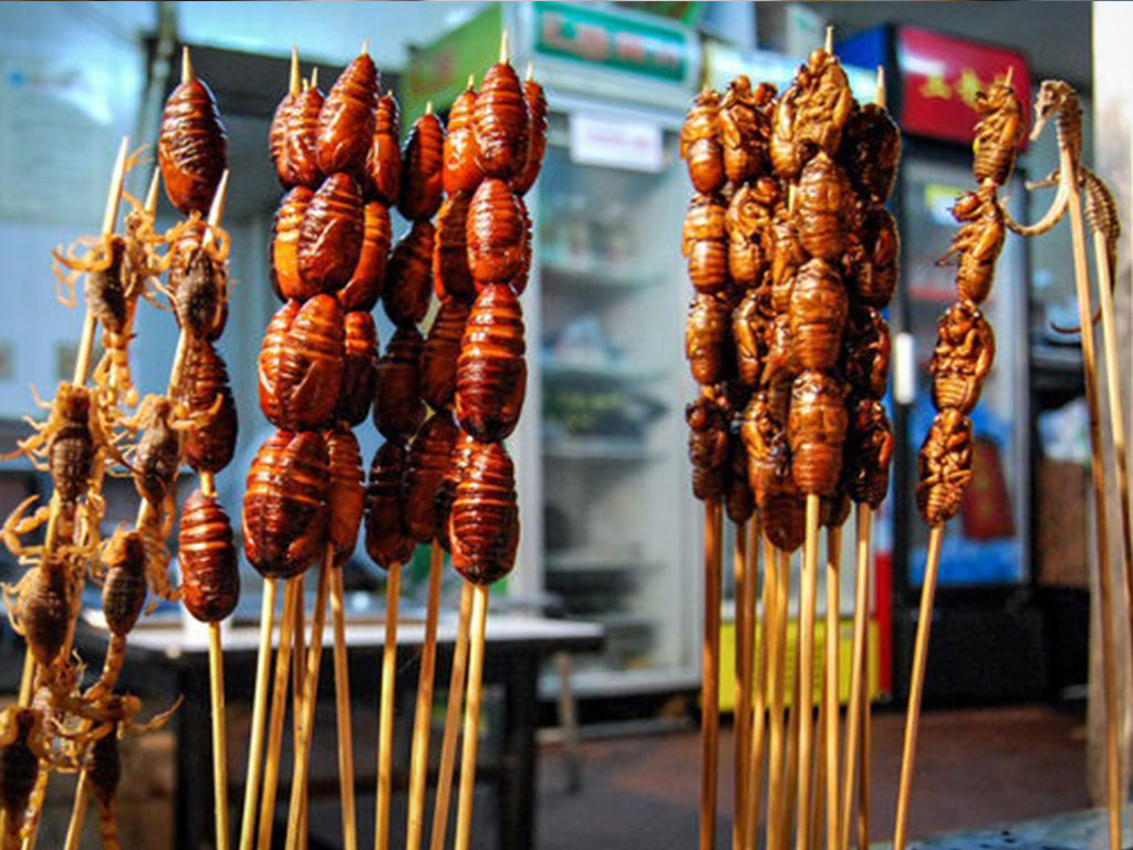 Visit the Beijing night market and you’ll find all sorts of weird delicacies to eat. Like big black scorpions on a stick. They’re dry and crispy, just like all the best snacks. In fact, eating them is almost like eating hard chips. And they’re considered a delicious treat in Beijing.