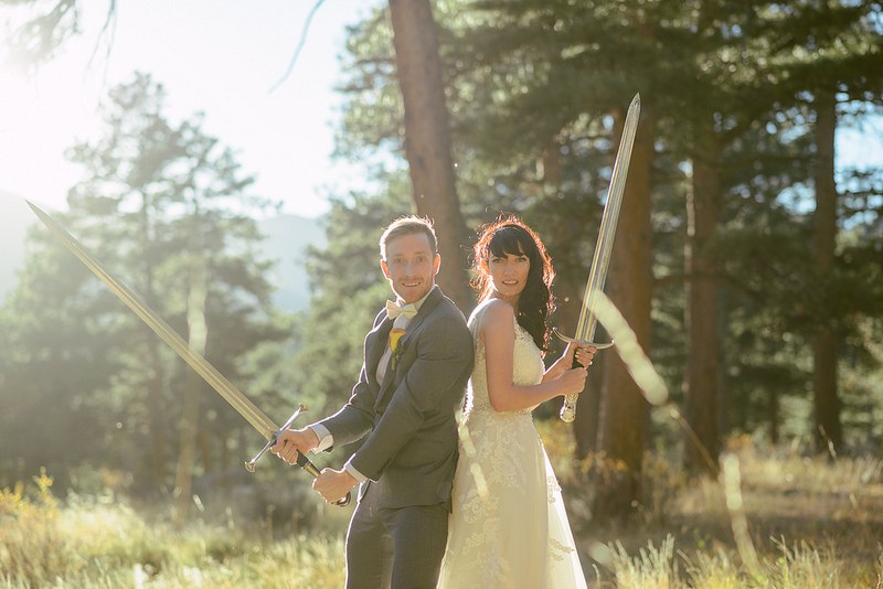 The bride, groom and their entire wedding party stopped at the objection part, pulled out foam swords and started battling each other. The soon-to-be-married couple won and they got back to the ceremony.