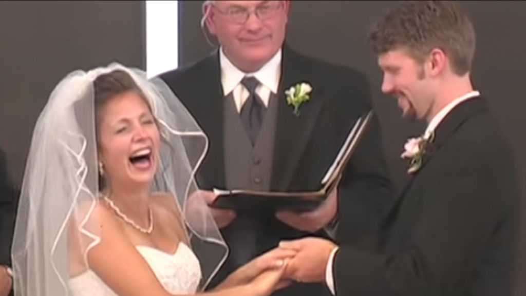 The bride laughed so hard that she had to sit down in her wedding dress. The rest of the church joined in and laughed even harder when her dad stood up and said, “sorry, the bagel I had this morning didn’t like me.”