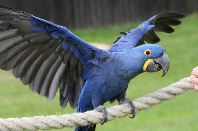 This is the largest species of parrot on the planet. These beautiful birds are known for their distinctive blue and yellow coloring. These birds are intelligent, affectionate, and very easy to train. However, these birds aren’t only expensive, but so is their care. A good quality cage alone will set you back about $2,000.