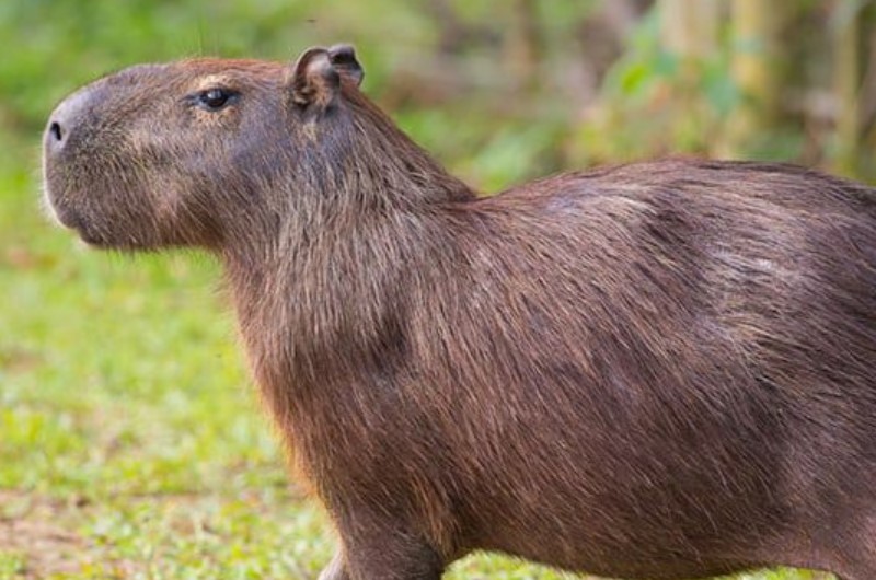 Able to grow up to four feet and weigh in at over a hundred pounds, capybaras are the largest living rodents. They are also known as carpincho, water hogs, or giant hamsters. They eat six to ten pounds of food each day. You can obtain a license to buy one in Texas or Pennsylvania for $1,100, but it’s not legal to own a capybara in some states. The capybara is a gentle and friendly animal who loves to interact with humans. To keep a capybara happy and healthy, it will need a place to swim as often as possible.