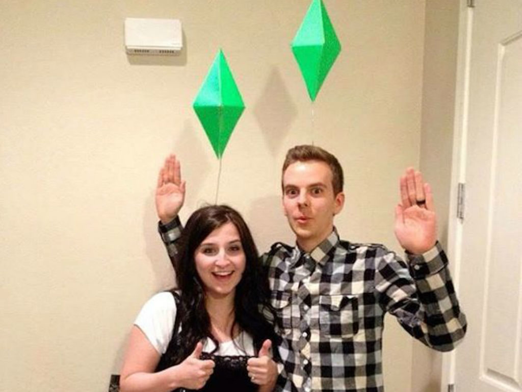 This costume is pretty clever when you consider how obsessed we all are with video games, Sims in particular. The easy part is that Sims wear what people wear, so you don’t have to go searching for anything special unless you want to. It all comes down to the headband with the diamond attached. Go freak some people out, it’ll look seamless.