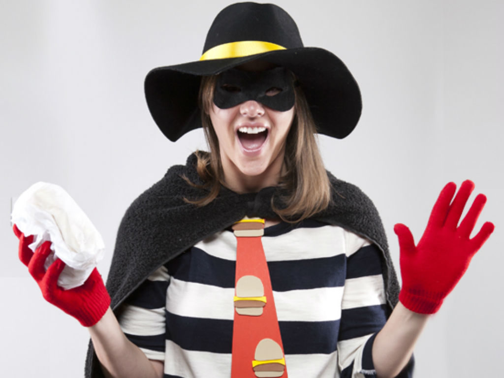 Sure, it’s a clever concept that’s been coined by McDonalds, but that doesn’t make it any less clever. The only distinction between this kind of burglar and a regular one is the placement of burgers all over the place. Heck, you can even go so far as to carry a burger throughout the party. The burgers on the tie are a good backup just in case you eat your prop early in the night.