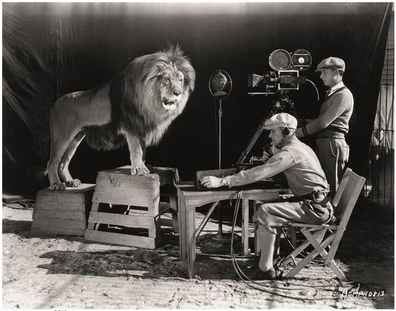 “Jackie” le Lion, enregistrant le rugissement de MGM, 1928.