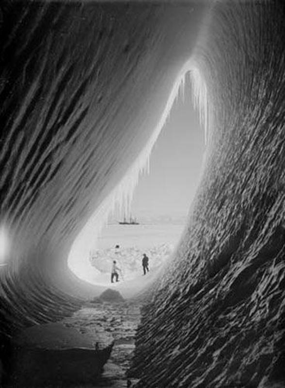 Grotte dans un iceberg lors de l’expédition britannique de l’Antarctique, 1911.