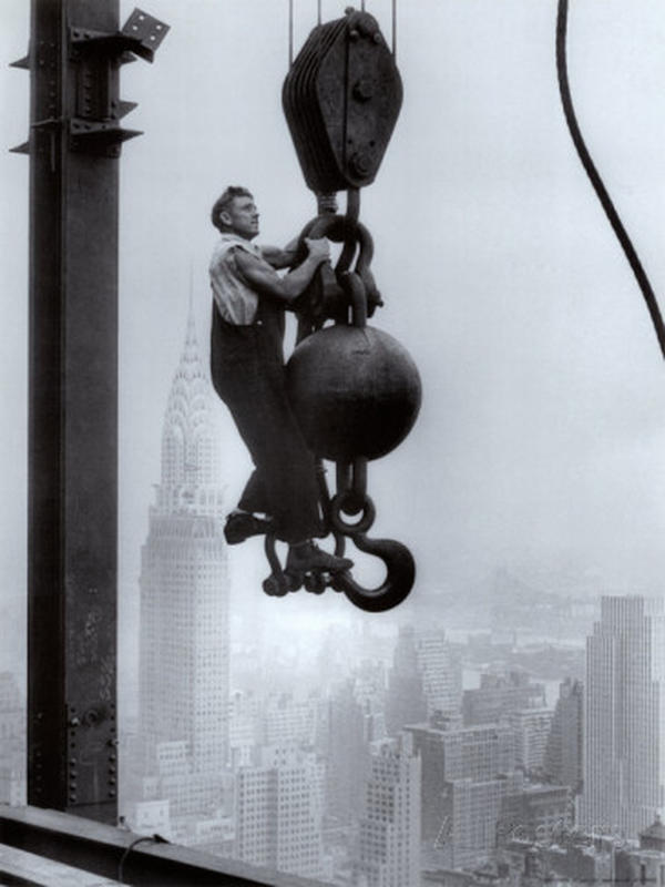 Un constructeur de l’Empire State suspendu à une grue au-dessus de New York, 1925.
