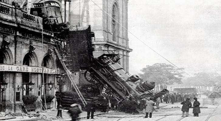 Un train déraille à la gare Montparnasse à Paris, en 1895.