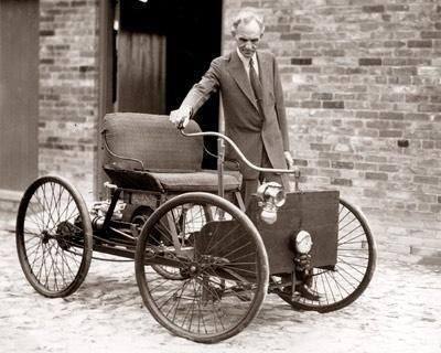 La première invention d’Henry Ford concernant le “quadricycle” en 1896. Elle utilisait des matériaux de construction de base, notamment une courroie en cuir et une transmission par chaîne pour la transmission, un siège de poussette et un fer à repasser pour le cadre. Il vendit son premier quadricycle à 200 dollars et utilisa ce bénéfice pour fabriquer sa deuxième voiture.