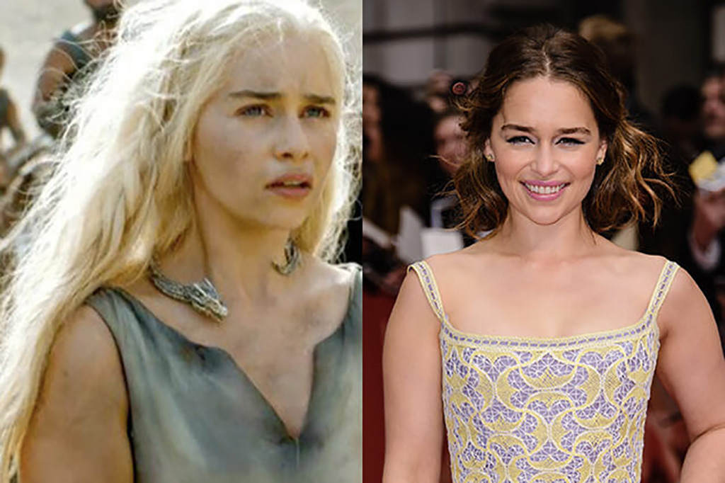 Although she’s a favorite on the television show, you very well might pass by Emilia Clarke on the street unknowingly without her staple silver Targaryen hair or dragon companions. Emilia Clarke certainly undergoes many transformations on-set according to what her character Daenerys is undergoing at the time. She goes from clean to dirty back to clean so many times it makes your head spin.