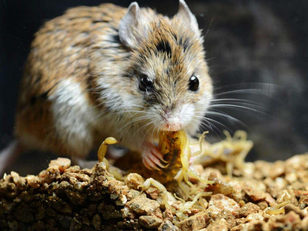 Don’t be fooled by this little guy’s cute whiskers and tiny paws. The Grasshopper Mouse is “only distantly related to the common house mouse” and is a carnivorous species that feeds on insects, snakes, and scorpions. It’s also immune to the various venoms and poisons its prey uses to defend themselves. Stalking its prey like a cat, the mouse often defends its territory by “howling.”