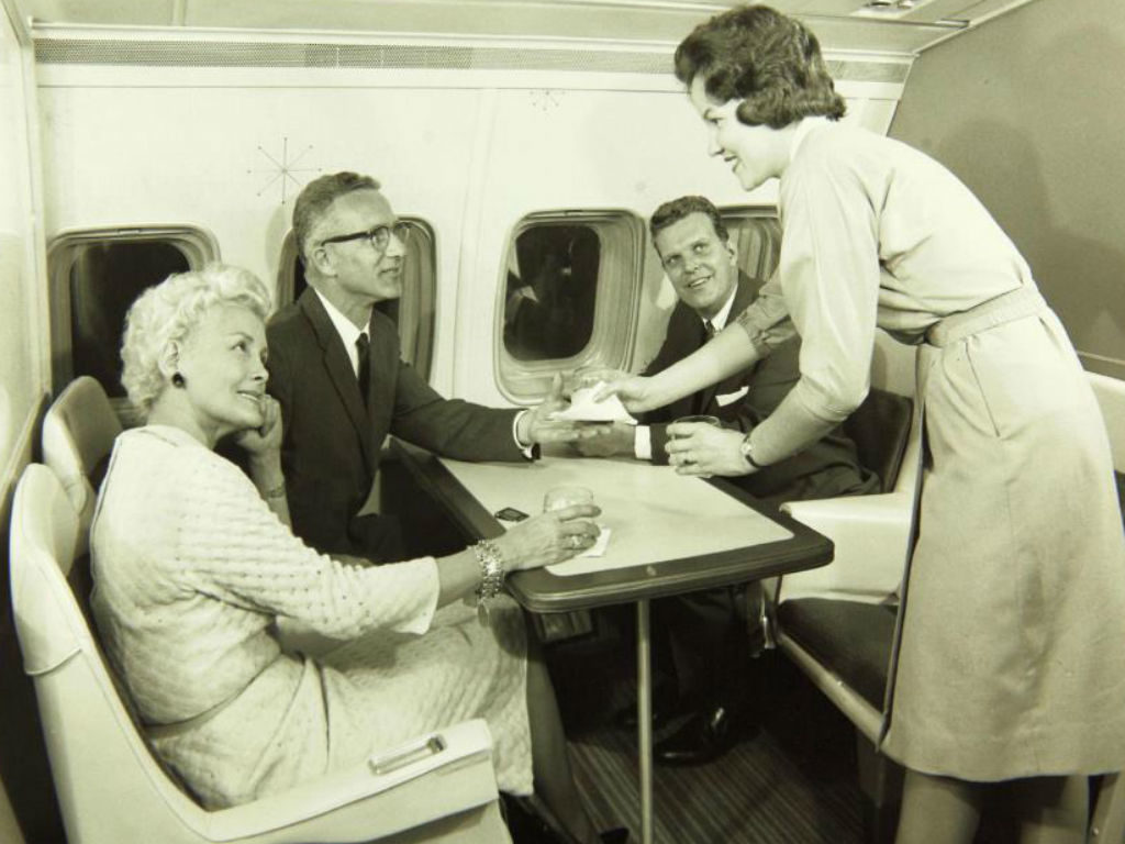No, it’s not a train. This luxury plane made you feel as if you were at a cocktail party with friends at 40,000 feet. Flying used to be a lot more of a social setting in comparison to today where many passengers’ priority is to stick in their ear plugs, pull down their eye shades and seclude themselves from the mass amount of strangers that surround them.