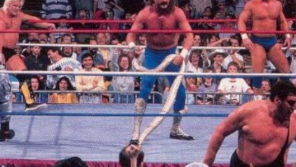 Andre The Giant was a favorite entering the Royal Rumble and despite his massive size, he was chased outside the ring by Jake “The Snake” Roberts who used his snake friend known as Damien. This is the first time that psychological warfare was used in the WWE.