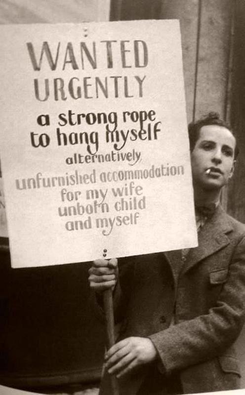Earlier we showed an image of a man who was having difficulty finding gainful employment during the Great Depression. He was a skilled, trilingual trade worker who simply wanted to make money to survive. Here, we see another desperate man who has a family (including a baby on the way) that’s depending on him to find a place to live. The alternative to not finding a home is what sticks out. The sad part is that this was the reality for many during that time; sources say that the national suicide rate jumped from 12.1 per 100, 000 people to 18.9 per 100, 000, and remained that way throughout the Great Depression.