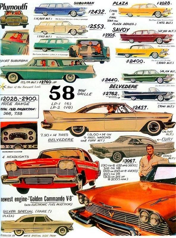 Today, new car buyers can find the sheer number of vehicles available for sale a bit overwhelming, even if there are people there to help narrow the options down. Not much was different, even in 1958. In this Plymouth car chart, we can see the family of vehicles that they presented nearly 50 years ago. The infamous Belvederes were in the mid-$2000s (around $21,000 with inflation), while the Fury was just over $3000. Unfortunately, the brand withdrew from the market in 2001 and all the vehicles not discontinued were rebranded as Dodge or Chrysler.