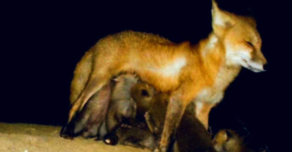 This photo is truly precious and a very rare sight to capture. Foxes are notoriously elusive and scenes like this are never seen by humans so the owner of this hidden camera was very lucky to capture such an adorable sight.