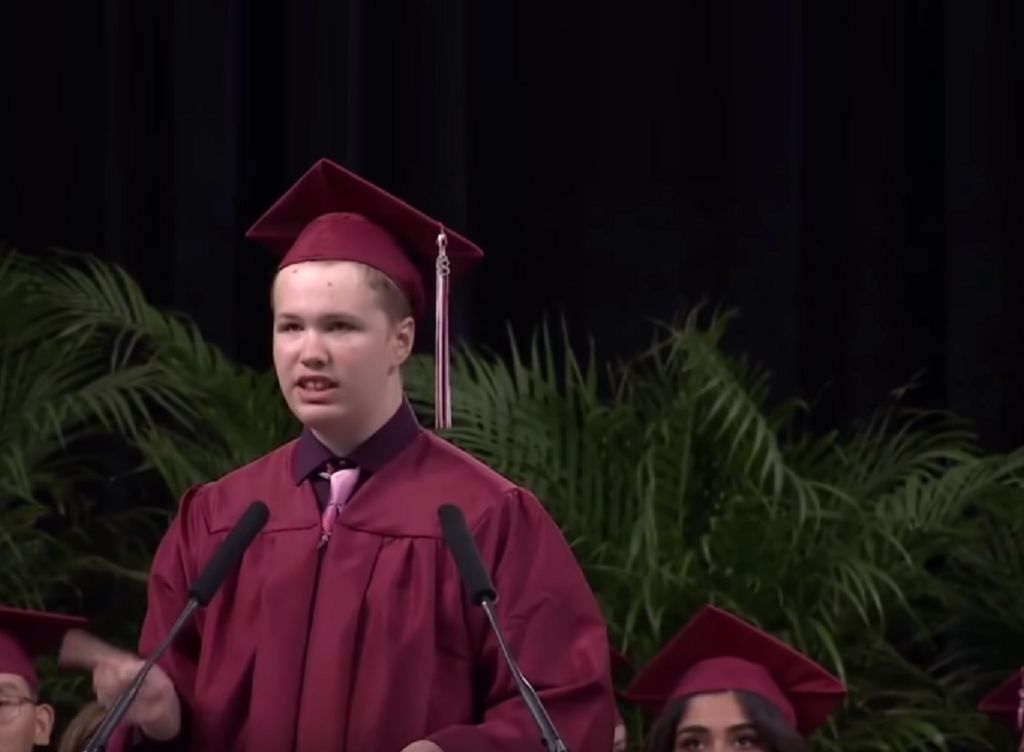 The student explained that he has a youger brother who survived a brain tumor and that he is giving speeches at events in order to raise money for charities. This inspired him to give a speech to all his fellow students and share one important life lesson with them.