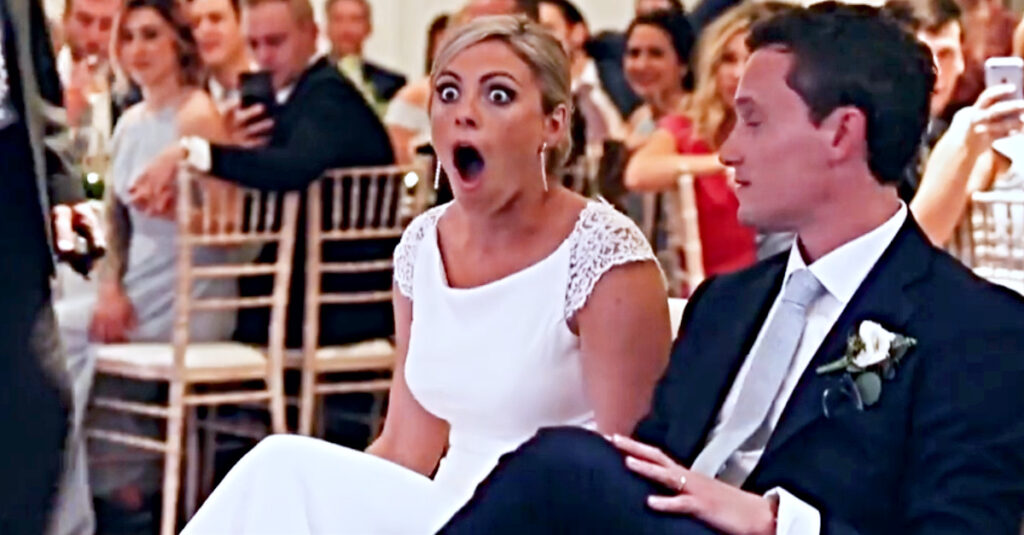 This photo was taken by a guest who was in on yet another bride surprise. Guests watched as the bride lost all composure to a surprise her husband had been planning for a while.
