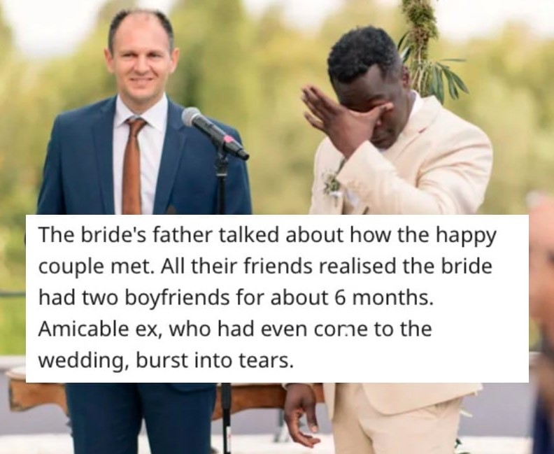 Seeing an ex going to their former partner’s wedding is not something you see everyday, and props to the people who can deal with it. Sometimes, a breakup can lead to friendship when the wounds have healed, but that’s not what happened here. Awkward!
