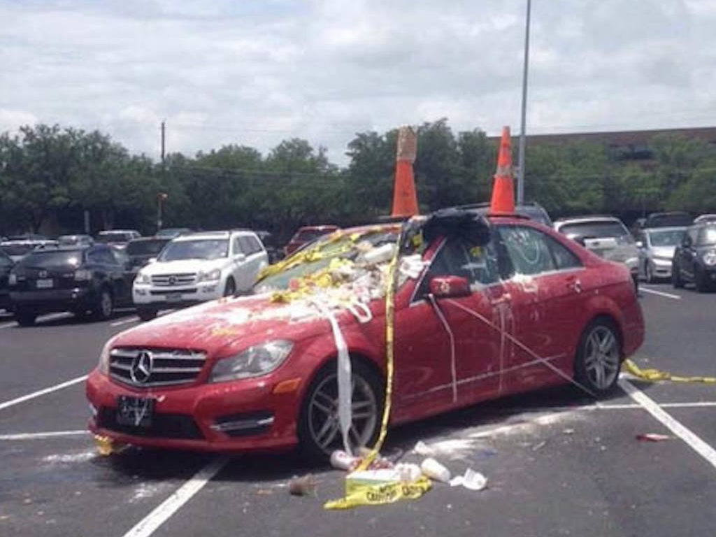 Has someone managed to park over five diferent spaces at once? That’s cause for celebration! Use milkshakes, eggs, caution tape and parking cones to throw the car a party and leave the owner to clean up the mess in future.