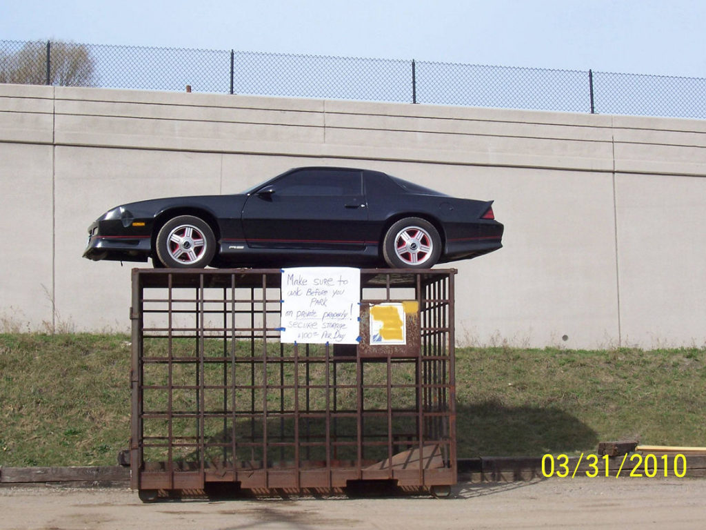 Finally, the cage, and a reminder to make sure to ask before you park on private property. Someone seems to have picked up an offending car and put it on the top of a metal cage – its owner is going to have a rude awakening when they return.