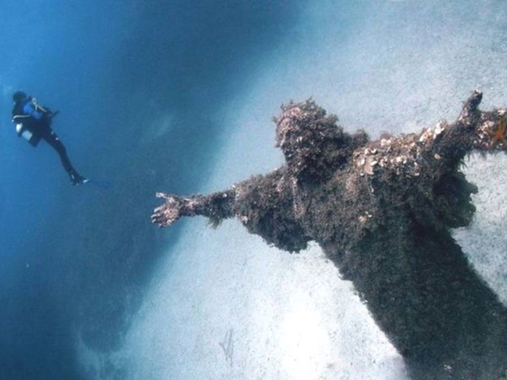 Located in the waters of San Fruttuoso, Italy, is a bronze statue of Christ. It is said that it was one of three that were made and later placed intentionally in the water. The first statue was completed in 1954 and placed near the area where Dario Gonzatti died in 1947. Gonzatti had been the first Italian to use Scuba equipment. Unfortunately, crustaceans and corrosion forced the city to remove the statue to restore it in 2003. Once the statue was fixed, it was placed back in its original position in 2004.