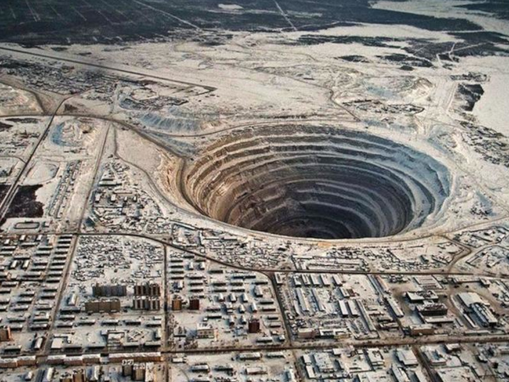 The Mir Diamond Mine is located in Mirny in Eastern Siberia, Russia, and was constructed in 1957. At that time, it started spilling diamonds out of this giant man-made hole that’s been dubbed the “Navel of the Earth.” Unfortunately, after years of producing diamond after diamond, the hole stopped what it was intended to do in 2001 and then diamond mine finally shut down completely in 2011. But the structure an the hole itself is still out there.