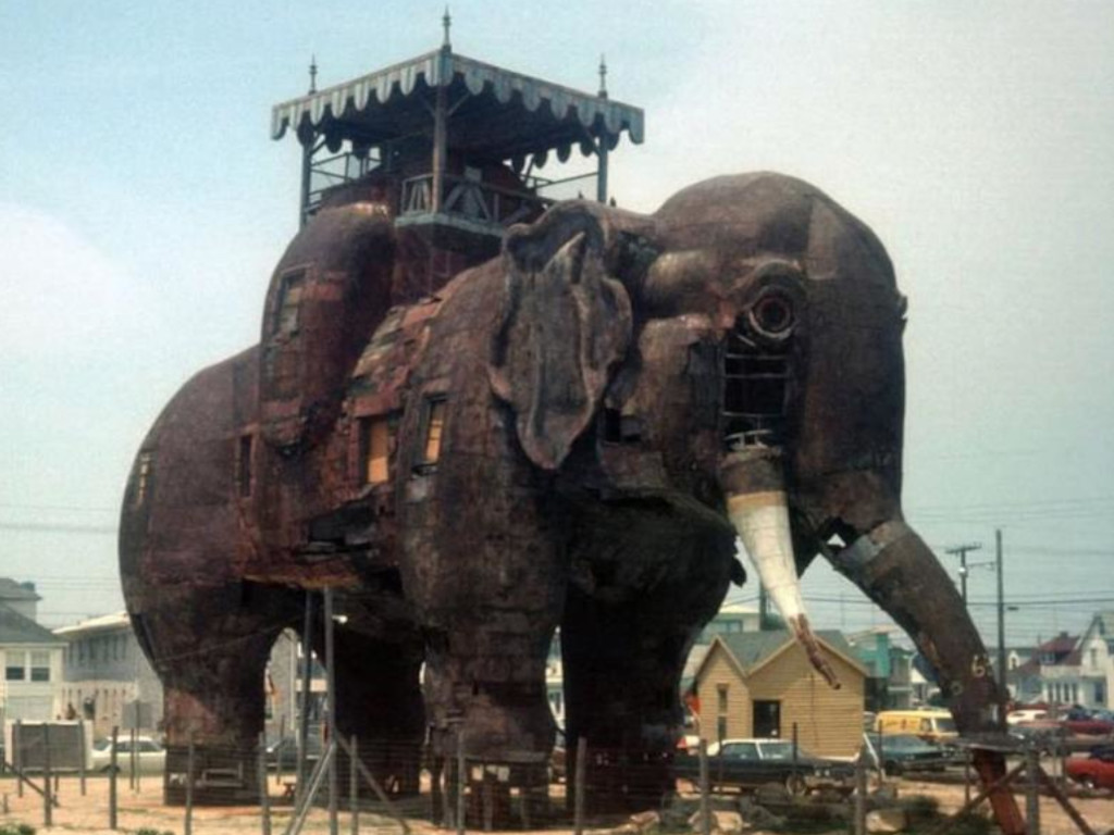 In 1881, a building in the form of an elephant was built. It was known as Lucy the Elephant Bazaar and came complete with winding staircases that led to the howdah, a type of seat where guests could ride on top of the giant elephant. Unfortunately, poor Lucy caught on fire back when the building was being used as a tavern.