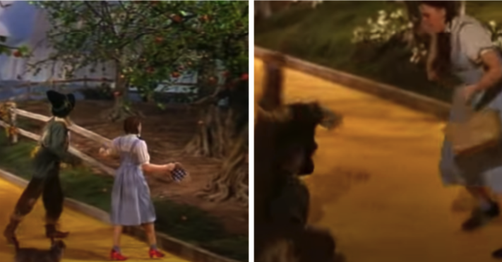 1939’s The Wizard of Oz is one of the most well-known films of all time, having left an indelible mark on the history of film as well as making Judy Garland and overnight star. There are many strange stories surrounding the film and several bloopers. One such blooper that slipped into the film was when Dorothy and Scarecrow try to escape after finding the apple tree, Dorothy can be seen running in black shoes.
