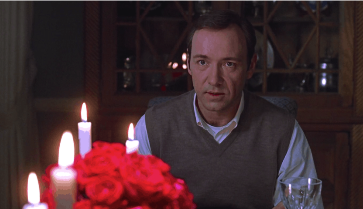 That unforgettable scene where Kevin Spacey’s character, Lester, throws a plate of asparagus at the wall, behind Thora’s Birch back, was meant to be thrown at the floor. Despite the fact that it was intended by the director to be that way, Spacey improvised the now-famous scene and threw the plate violently to the wall. The reactions from Annette Bening and Thora Birch are genuine.