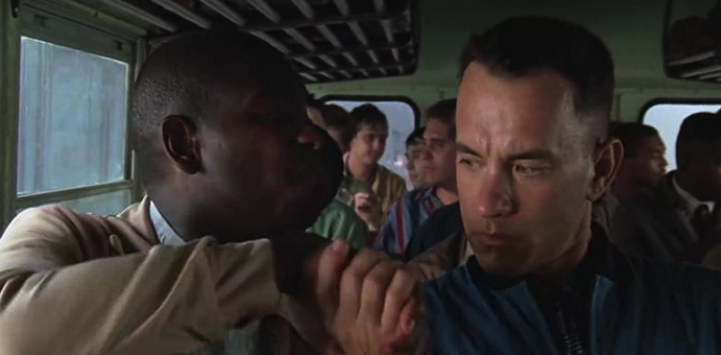 Forrest first meets Bubba on the bus before the pair embark on their stint in the military. Bubba says to Gump, “My given name is Benjamin Buford Blue. But people call me Bubba, just like one of them old redneck boys. Can you believe that?” Forrest then introduces himself. “My name is Forrest Gump. People call me Forrest Gump.” The iconic line was not in the script, but Zemeckis liked it so much he kept it.