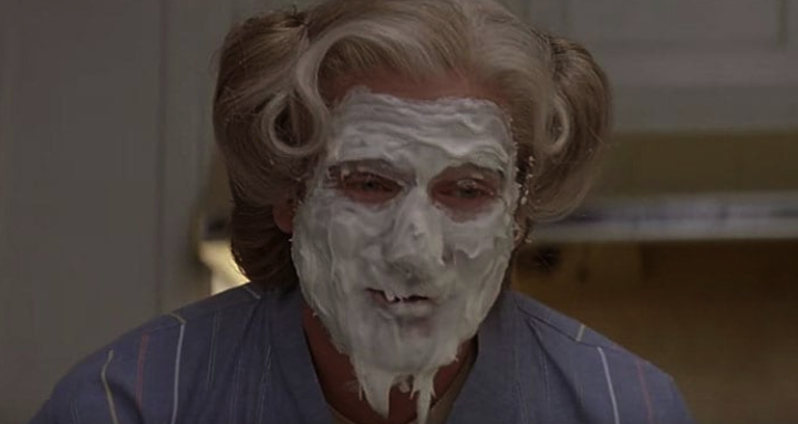 One of the most memorable scenes in the movie is when Mrs. Doubtfire frantically smashes her face in a cake to disguise herself. The icing drips into Mrs. Sellner’s tea and she says, “There you go, you’ve got your cream and your sugar now.” This hilarious detail was actually completely unintentional. Because it was so hot on set, the icing dripped from Robin Williams’ chin and he just improvised from there.