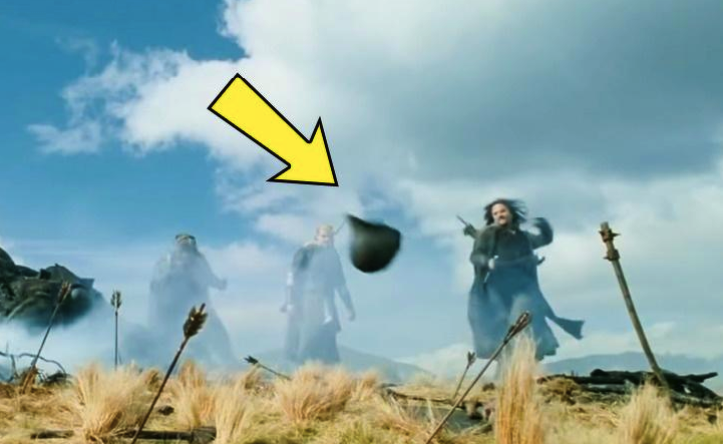 We already mentioned the scene in which a flag falls off a post while Éowyn is gazing at the horizon, but this is not the only blooper that made it to the final cut of Lord of the Rings: The Two Towers! Remember the fire scene where Viggo Mortensen kicks the helmet of an orc?