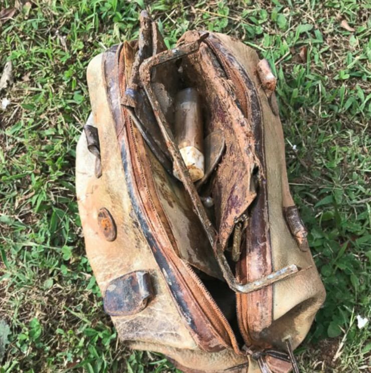 When Brodie saw that it was not fish coming out the water, he face fell. He certainly never expected that his first time would have him reeling a soddy old leather bag in.