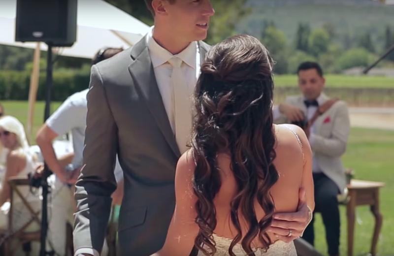 The wedding band abruptly cut out before the song had even begun and one of the musicians declared, “You know what, we have a better idea,” to the couple, over the microphone. The couple was confused… had something gone wrong? Then, they heard “Sam and Taylor, we have a special guest who’s here to sing you your first dance song.” Samantha’s heart stopped beating as she wondered what was happening. The crowd fell absolutely silent as they waited for what would happen next. What was going on. Then, they saw him and couldn’t believe their eyes.
