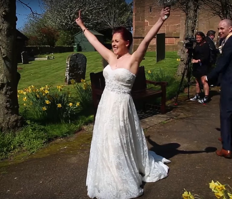 The whole surprise planned by Ollie was recorded on the video and posted online. Soon the video went viral. And how could it not! It was indeed a beautiful moment, which Liz and all of the guests are going to remember for the rest of their lives. But Liz wasn’t the only lucky bride who received such a touching surprise at her wedding ceremony. Becky and her groom Kelly Turney who were having their ceremony in Palmer, Alaska, received an uninvited guest as well.