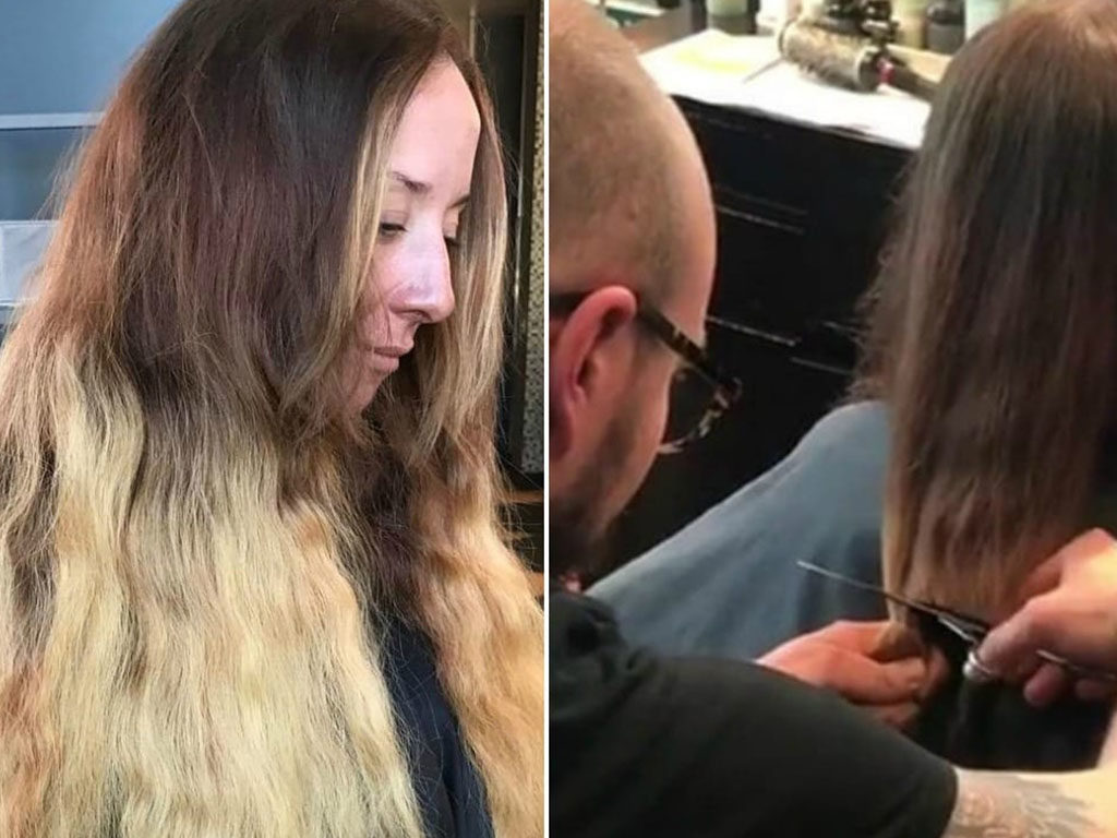 Pestella asked Jeremy Hartfield, another Avant Garde stylist to start chopping off Holly’s long locks. This was the first step of a long process. Hartfield needed to get rid of all the damaged hair first. But he didn’t stay conservative when it came to length.