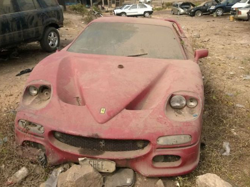 The F50 is a very popular model of Ferrari, but it’s also a rare find. Only 349 of these were ever produced and they were the last Ferraris to feature an F1 engine. This vehicle was found abandoned in Nigeria just sitting in a dirt field in very poor condition.