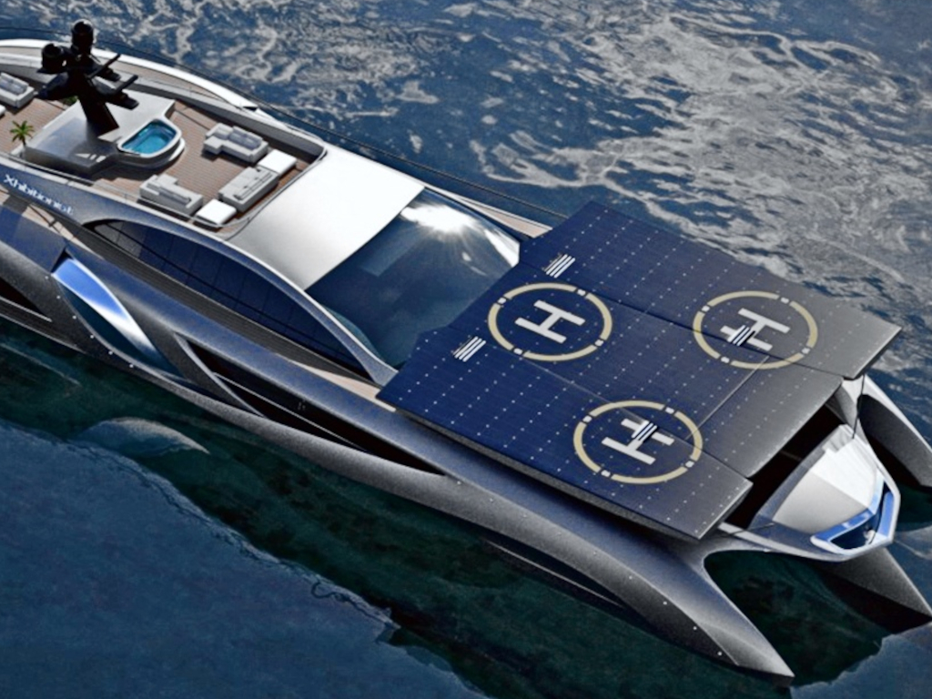 Inside, there are seven rooms and enough room for 12 guests. There’s an observation lounge, a VIP suite with a private balcony, and a sky lounge that turns into a cinema. It can be chartered for 330,000 euros per week.